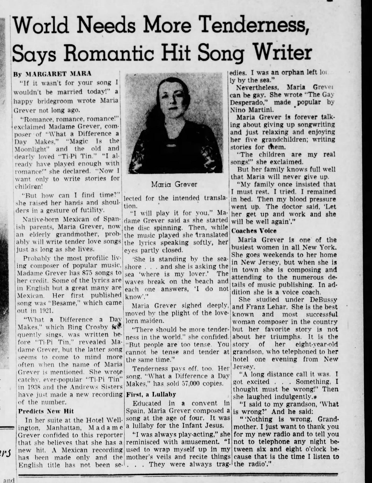 I was already feeling salty/excited about not knowing this connection when it drastically blossomed as I found out just who Grever’s grandmother was, Maria Grever.